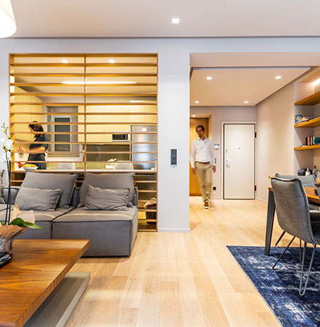 A pure bliss apartment with maximum light coming from its floor-to-ceiling windows.