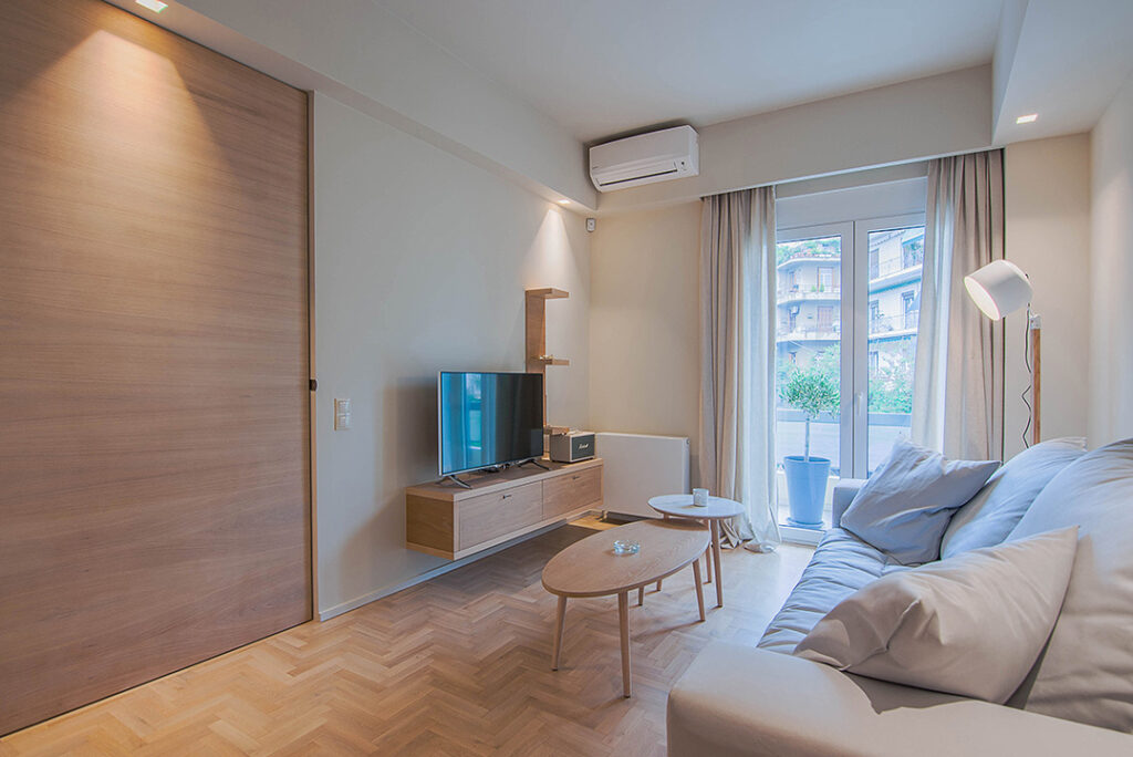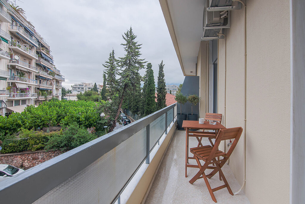 Both bedroom and living room have access to the balcony, bringing in the most of light and positive vibes! Prepare some snacks in its fully equipped kitchen. There’s a big window there too, reminding you that light is all around you! Enjoy your snacks outside on your long balcony, the park is just there on your right, inhale the freshness of the breeze that comes straight from Lycabetous hill.